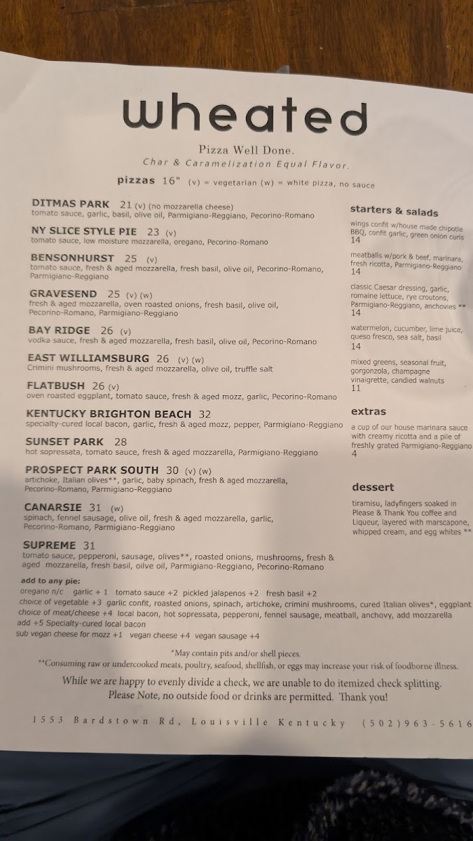 If you're looking for a menu that offers rich flavors and a unique twist, the Wheated Menu at 1553 Bardstown Rd is a must-try. Located in Louisville, KY, this spot features an exciting range of dishes, with something for every craving. Whether you’re in the mood for a hearty meal or a light bite, the options here combine fresh, locally sourced ingredients with innovative cooking techniques. The menu stands out with its carefully crafted selections, each dish highlighting quality and taste. From savory appetizers to mouth-watering entrees, each choice promises a satisfying experience. You’ll find a welcoming atmosphere that makes dining here feel like a real treat, and it’s the perfect place to enjoy a meal with friends or family. With each dish, the focus on flavor, presentation, and seasonal ingredients makes this menu truly unforgettable.